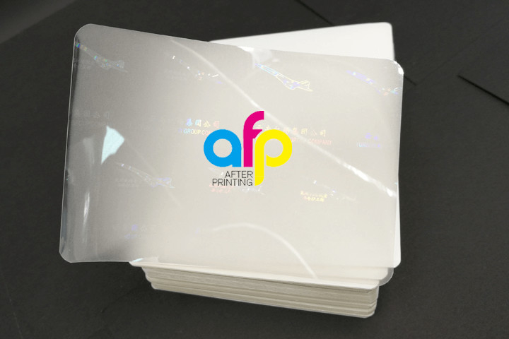 فيلم Holographic PET لتصفيح الحقيبة هو فيلم تصفيح خاص للحقيبة يرى تأثير الهولوغرام على الجانب الأمامي ، وهو شائع مع صورة ثلاثية الأبعاد لشعار الشركة أو علامة الشركة أو غيرها من الأنماط الخاصة وتستخدم لبطاقات الموظفين وبطاقات VIP ، إلخ.