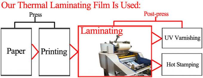بشكل عام ، تستخدم المطبعة لفات فيلم التصفيح الحراري BOPP للطباعة التجارية والمدرسية.